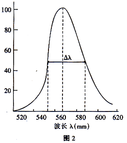 (3)光谱半宽度Δλ:它表示发光管的光谱纯度.是指图3中1/2峰值光强所对应两波长之间隔.