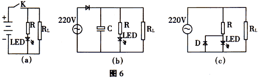 (2)图6(a)、(b)、(c)分别为直流电源、整流电源及交流电源指示电路。